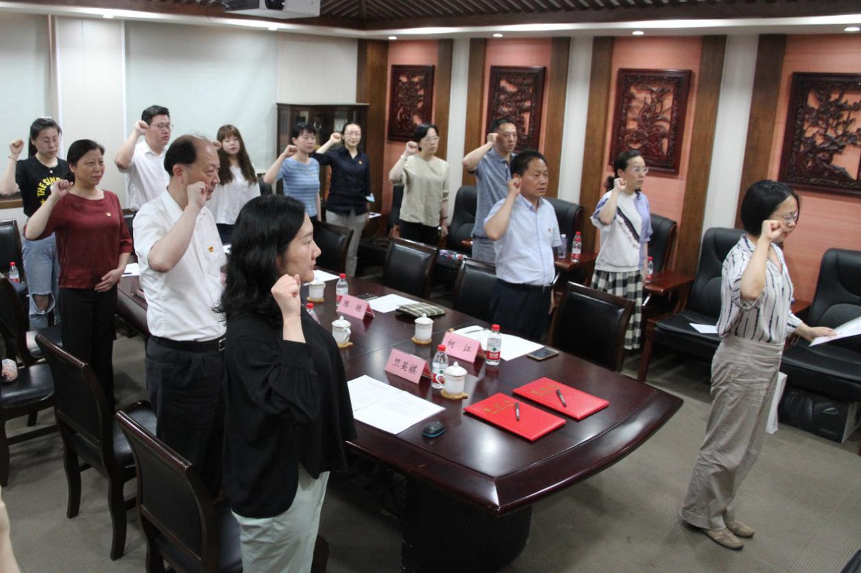 陈艳带领全体党员面向党旗,重温入党誓词,更加坚定为共产主义奋斗终身的信念。竺英祺、徐汇区医疗保障局机关党支部何江分别作为双方代表介绍支部基本情况,双方期望通过党支部共建共育,加强交流,共同提高。气功研究所在职支部薛晓君、徐汇区医疗保障局机关党支部费晓丽从青年党员的角度出发,分别以《学习百年党史汲取奋进力量》《学好百年党史 勇挑时代重担》为题分享各自在党史学习教育中的心得体会。