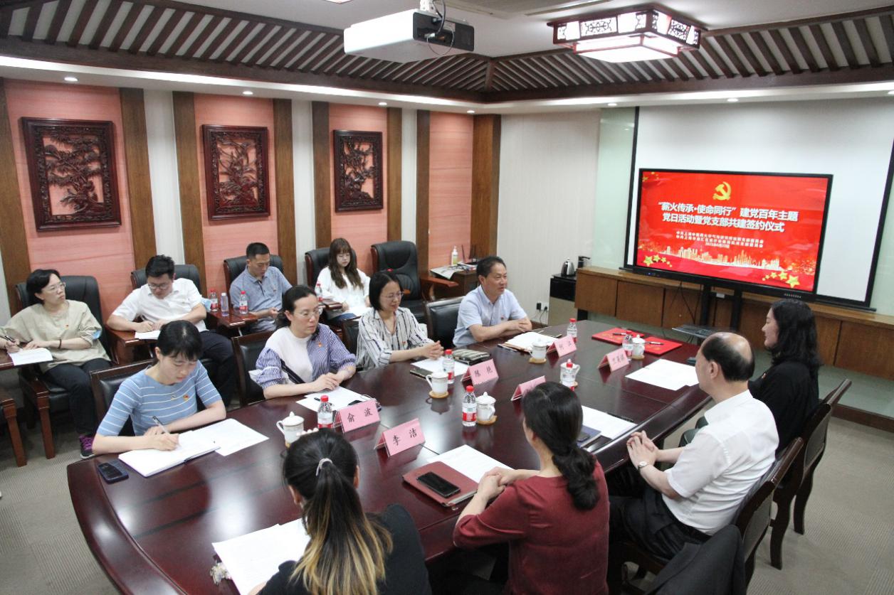气功研究所党总支何江致辞,祝贺两支部在建党百年的重要时刻开展党建共建签约,希望两支部围绕新时代党建工作的新任务和新要求,充分发挥各自党建特色,通过双方党建共建共育、党建资源互享、业务建设互促、主题活动互动,使党组织的凝聚力、战斗力、感召力更加凸显,不断提高党组织的建设水平。扎实开展党史学习教育,从中汲取精神的力量,更加坚定信仰信念,努力工作,在为党和人民事业的奋斗中践行好初心使命。