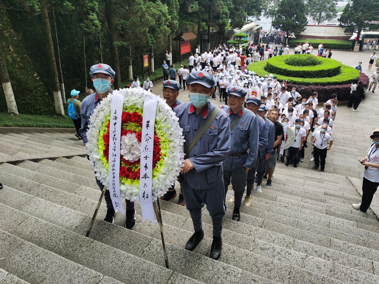 6月19日,专家团一行穿上整洁的红军服走进井冈山革命烈士陵园缅怀革命先烈。在烈士陵园纪念馆,专家团一行肃立,默哀,躹躬,祭奠英灵,寄托哀思,敬献花圈。