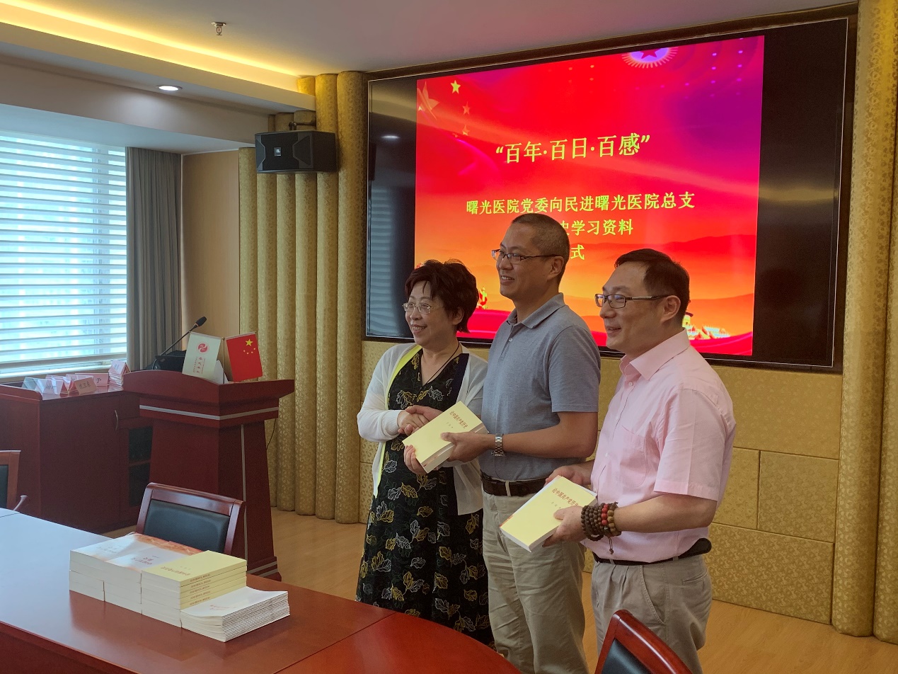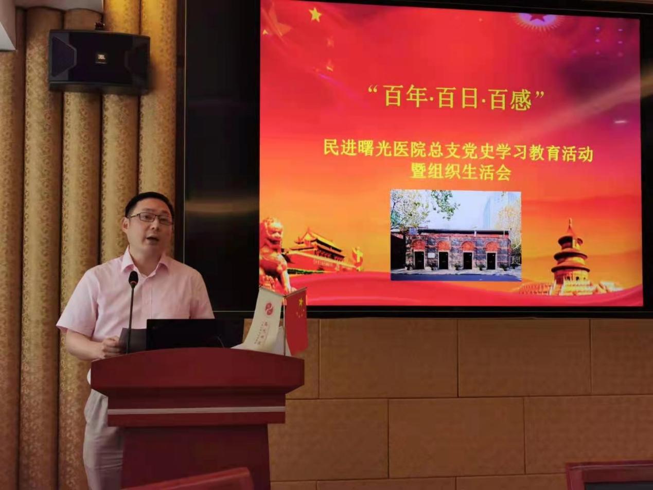 为贯彻落实习近平总书记在党史学习教育动员大会上强调的学党史、悟思想、办实事、开新局的指示和中共中央办公厅《关于在全社会开展党史、新中国史、改革开放史、社会主义发展史宣传教育的通知》文件精神,传承红色基因,夯实政治基础,6月30日,民进曙光医院总支举行“百年·百日·百感”党史学习感悟活动。beat365官网附属曙光医院党委书记马俊坚,民进上海市委员会医药卫生专委会副主委叶伟成,民进上中医委员会副主委沈卫东、老领导蒋有倩和殷岫绮等,以及民进曙光医院总支部分成员出席会议。曙光医院组织统战部部长练慧及医院其他民主党派负责人和骨干到会。会议由民进曙光医院总支主委何峥主持。
