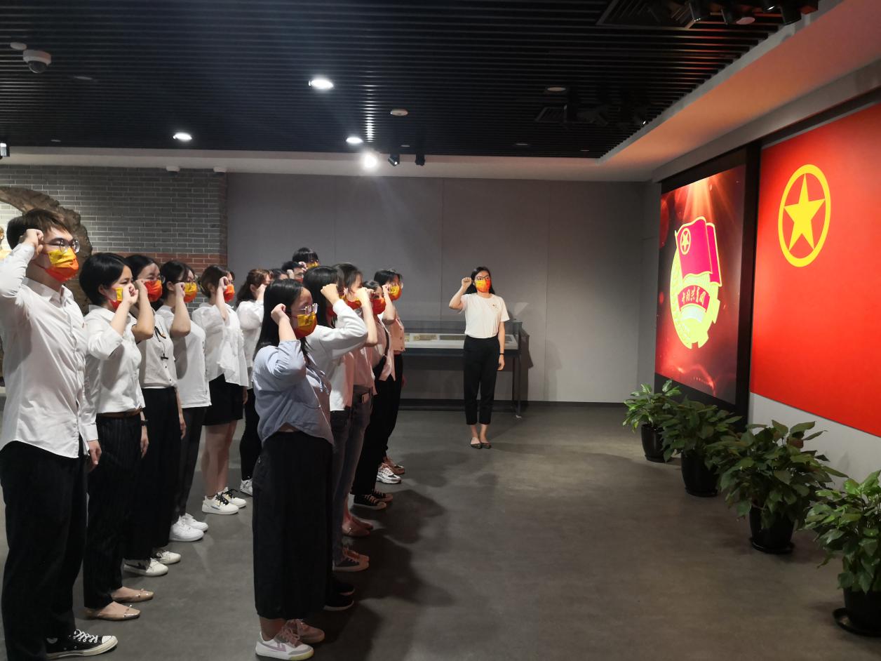 位于淮海中路567弄6号的渔阳里,是中国社会主义青年团的诞生地,也是建党前夕上海共产主义者重要的活动场所之一,是中国共产党重要历史的见证者及发源地。步入序厅,一组重达一吨的艺术浮雕群像《先驱》展现了俞秀松、施存统、陈望道、李汉俊等中国社会主义青年团发起人的形象。在序厅的宣誓墙前,团员青年们在医院团委书记肖夏懿的带领下,重温入团誓词。