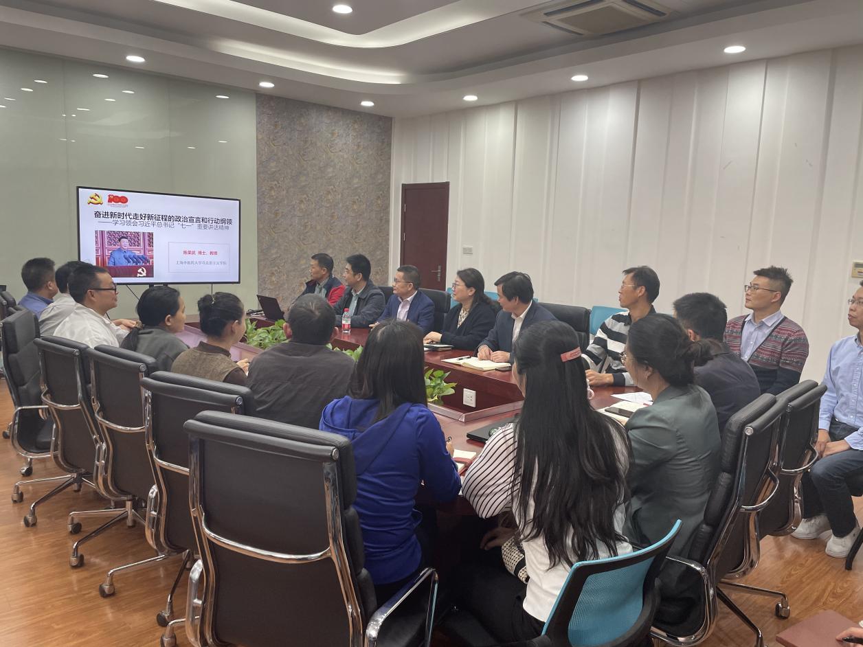 为推进党史学习教育往深里走、往实里走、往心里走,11月3日,针灸推拿学院党总支组织全体教职工在9421会议室开展政治理论学习,认真学习beat365官网马克思主义学院陈荣武教授题为《奋进新时代走好新征程的政治宣言和行动纲领——学习领会习近平总书记“七一”重要讲话精神》的报告。学习会由针灸推拿学院党总支书记陈秋生主持。