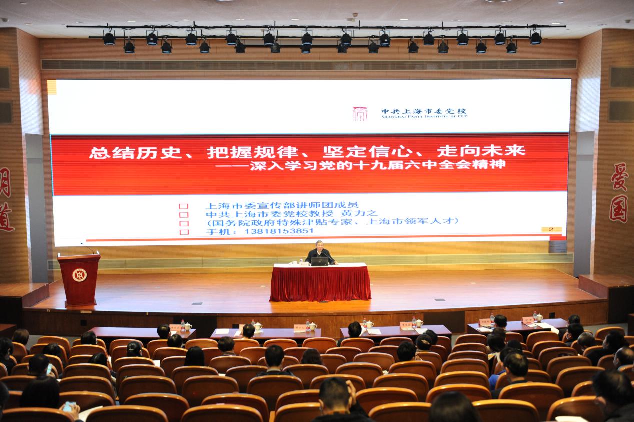 12月9日下午,校党委中心组(扩大)学习会在图书馆裙楼四楼报告厅举行,邀请上海市委宣传部讲师团成员、中共上海市委党校教授黄力之作《总结历史、把握规律、坚定信心、走向未来——深入学习党的十九届六中全会精神》专题辅导报告。校党委中心组成员,党外代表人士,校本部教师党支部书记、青年教师班主任,组织员、辅导员,马克思主义学院教师,以及学生代表等参加学习。校党委副书记季光主持会议。
