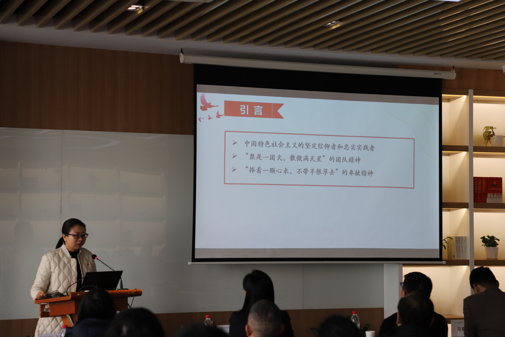 任宏丽以《“文”医为民送健康,砥砺前行新时代》为题,分享支部以党建引领教师思政工作的探索与实践,从注重党建引领、以德育人,发挥专业优势、以医助人等方面交流党支部成果与经验。