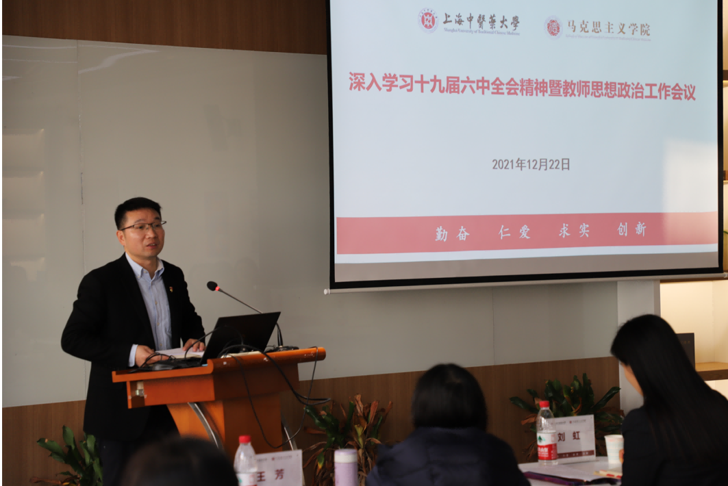 为深入学习十九届六中全会精神,贯彻党中央关于新时代高校教师思想政治工作的新部署和新要求,以及beat365官网教师思想政治工作会议要求,马克思主义学院于12月22日召开学习十九届六中全会精神暨教师思想政治工作会议。校党委教师工作部副部长刘虹、创新中药研究院联合党支部书记冯陈国、科技人文研究院第二党支部书记任宏丽以及马克思主义学院全体教师参加会议。