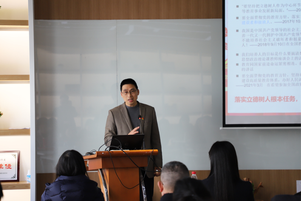 会上,刘虹作题为《树师德强师能正师风做“四有”好老师》的报告,介绍学校教师工作部的基本情况、工作任务,以及近年来在推进教师思政及师德师风建设方面的举措与经验,并对新时代教师思政工作的内涵和方向提出思考。