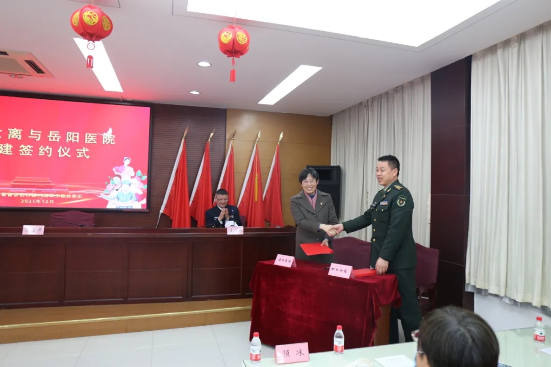 为不断厚植拥军优属思想根基,进一步丰富党史学习教育,扎实推进“我为群众办实事”实践活动。12月24日,附属岳阳中西医结合医院党委与上海警备区虹口第六离职干部休养所(以下简称“虹口六离”)举行军民共建签约仪式,以区域化党建共建模式进一步推动新时代军民融合深度发展。医院党委书记郑莉,党委副书记、纪委书记赵庆,虹口六离政委孙大庆,所长祝庭海及双方工作人员参加活动,虹口六离门诊部主任李永朝主持仪式。