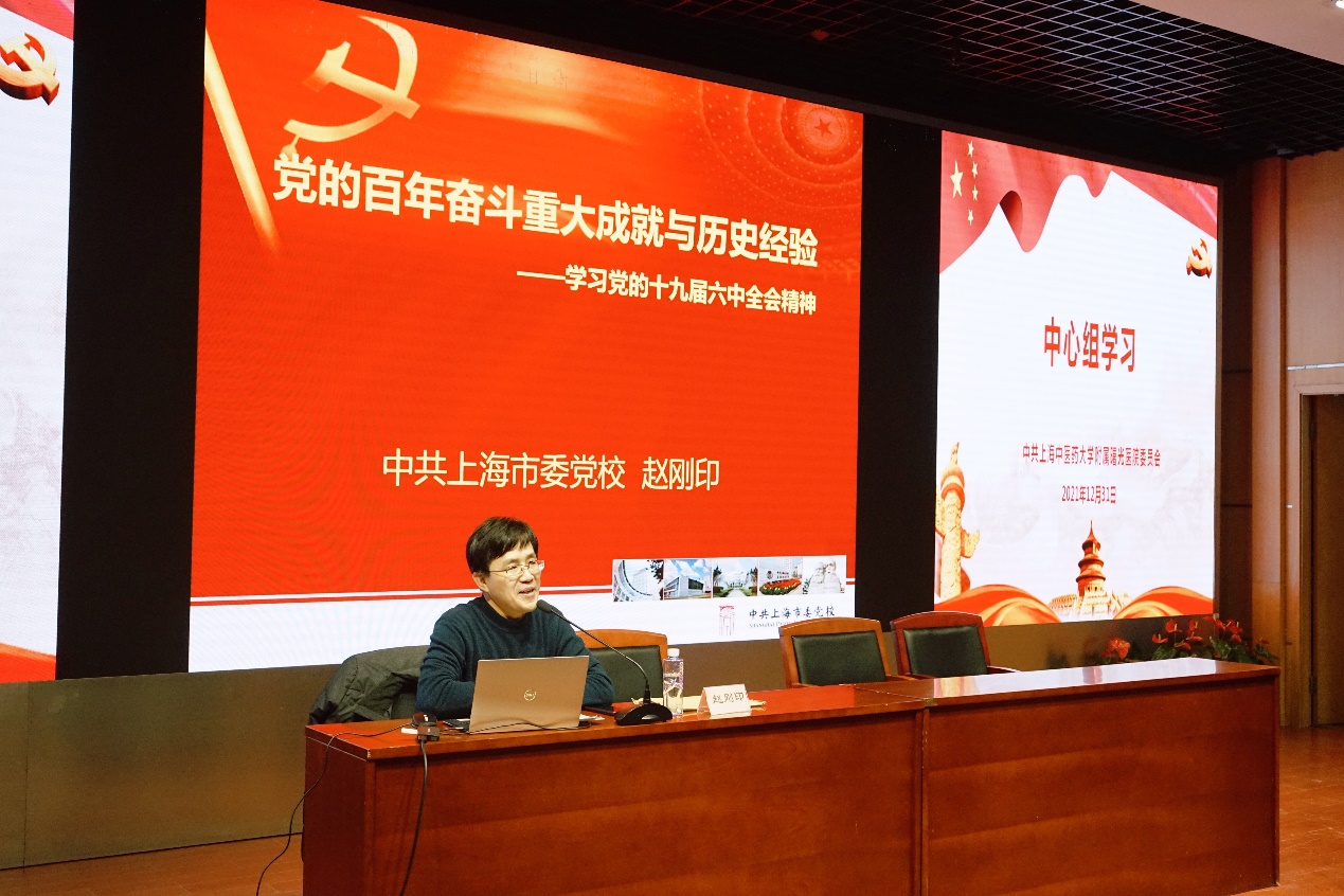 近日,beat365官网附属曙光医院党委中心组(扩大)学习会在东院二楼学术报告厅举行。上海市委党校赵刚印教授作《党的百年奋斗重大成就与历史经验——学习党的十九届六中全会精神》专题报告。医院党政领导班子、党委委员、纪委委员、党支部书记及各临床、职能部门负责人、各教研室主任、护士长等参加学习会。会议由医院党委副书记郝微微主持。