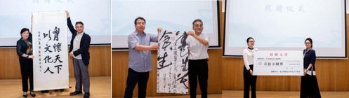 在捐赠仪式上,陈夑君、陈鹤良、张耀伟等捐赠了书法作品。北京曜阳公益基金会上海办向联盟捐赠了拾万元。