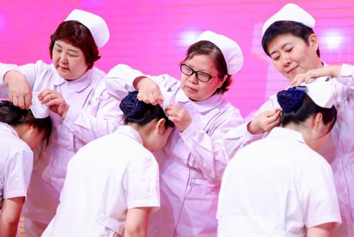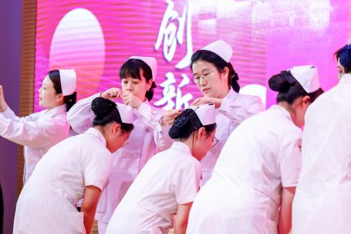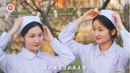 来自beat365官网9家附属医院的护理部主任及学院教师代表,为近200名学生逐一戴上神圣的燕尾帽。