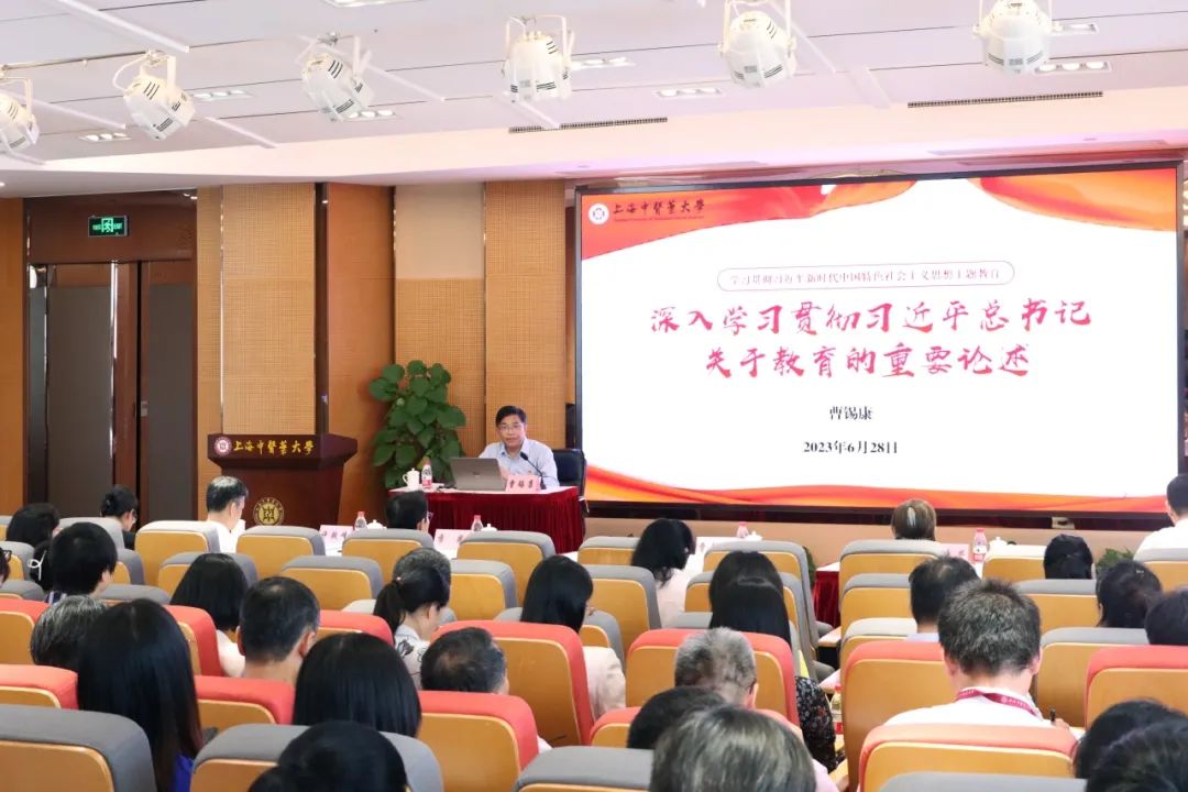 6月28日下午,beat365官网学习贯彻习近平新时代中国特色社会主义思想主题教育读书班暨校党委中心组(扩大)学习会在行政中心301会议室举行,传达学习习近平总书记在文化传承发展座谈会和在内蒙古考察时的重要讲话精神。校党委书记曹锡康讲授《深入学习贯彻党的二十大精神和习近平总书记关于教育的重要论述》专题党课。校主题教育领导小组成员,校党委中心组成员,校本部教师党支部书记,组织员、辅导员,马克思主义学院全体教师参加学习。校党委副书记、副校长朱惠蓉主持学习会。