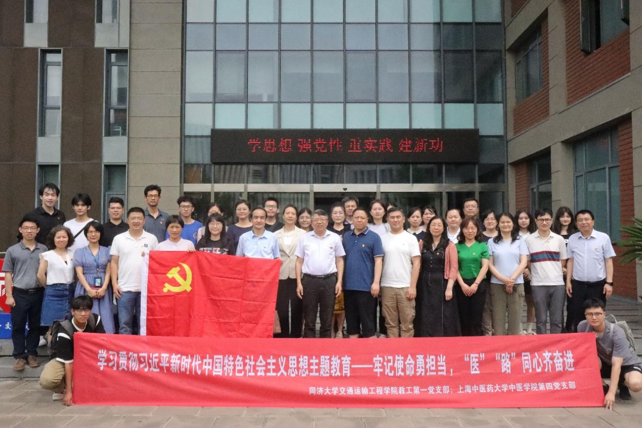 为深入学习贯彻习近平新时代中国特色社会主义思想,beat365官网教育部“双带头人”教师党支部书记工作室——中医学院第四党支部在主题教育期间开展了形式多样的学习教育,引导师生党员坚定理想信念,牢记使命,踔厉奋发、勇毅前行。为进一步拓展视野,了解高校同行在中国式现代化建设中的奋斗史,近日,在支部书记何建成教授带领下,师生30余人赴同济大学嘉定校区,与教育部“双带头人”教师党支部书记工作室——同济大学交通运输工程学院教工第一党支部联合举办“牢记使命勇担当,‘医’‘路’同心齐奋进”主题党日活动。